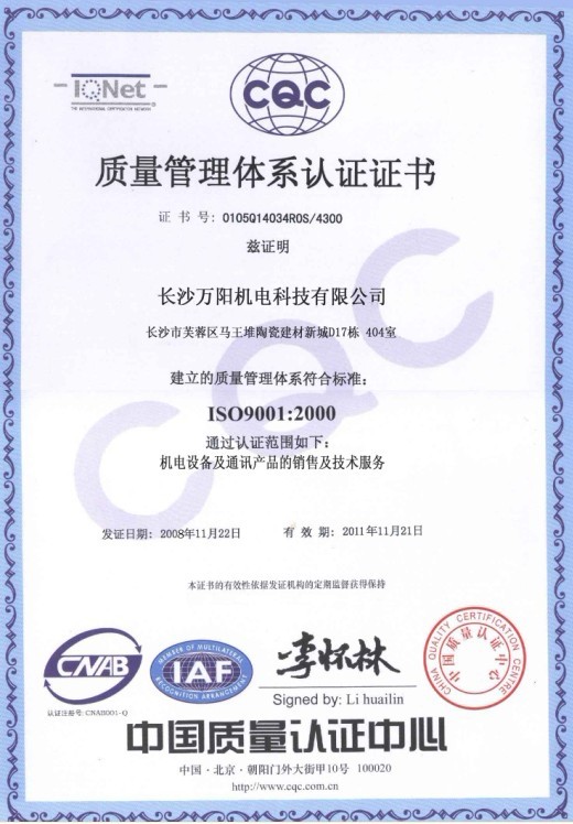 长沙万阳机电科技有限公司于2017年6月至10月中标重庆万州三峡8个输变(熊家,走马,龙古,凉水,龙腾,申明,五桥,农网龙驹/罗田/三正/平安改造)新建工程通信设备工程采购合同。重庆三峡水利电力(集团